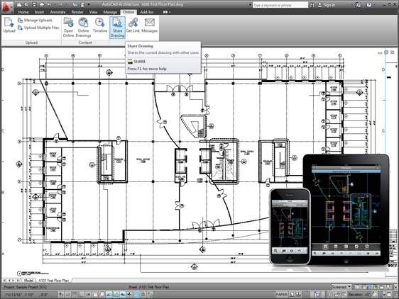 Τώρα έχετε πρόσβαση στην διαδικτυακή υπηρεσία AutoCAD® WS, μέσω ενός plug-in για το AutoCAD Architecture, για να υποστηρίζεται η συνεργασία των μελών μίας ομάδας μέσω του διαδικτύου. Δείτε, επεξεργαστείτε και μοιραστείτε από κοινού σχέδια DWG, μέσα από έναν Internet Explorer (ή οποιοδήποτε άλλο πρόγραμμα περιήγησης στο διαδίκτυο), ή μέσα από φορητές συσκευές, ακόμη και κινητά τηλέφωνα.