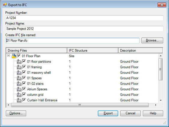 Το AutoCAD Architecture σας επιτρέπει να εξάγετε τα σχέδιά σας σε αρχείο τύπου IFC (Industry Foundation Claίes), βοηθώντας σας να δημιουργήσετε, να διαχειριστείτε και να κάνετε κοινή χρήση των δεδομένων σας με άλλα μέλη της μελετητικής διαδικασίας, χρησιμοποιώντας το πρότυπο αυτό.