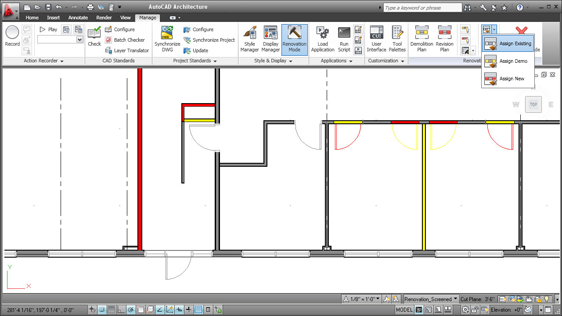 Τα εργαλεία ανακαίνισης του AutoCAD Architecture, σας βοηθάνε να αυξήσετε την ταχύτητα σχεδίασης και παραγωγής μελετών ανακαίνισης. Το εργαλείο αυτό σας επιτρέπει την σχεδιαστική αναπαράσταση των αλλαγών στο υπάρχον κτίριο όπως αυτά είναι, πριν, μετά, ή κατά την διάρκεια της ανακαίνισης.